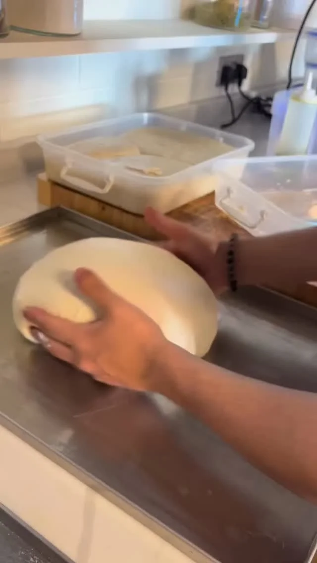 Our focaccia is baked fresh every single day. We ferment our dough for over 24 hours until we see those beautiful bubbles start to form.
